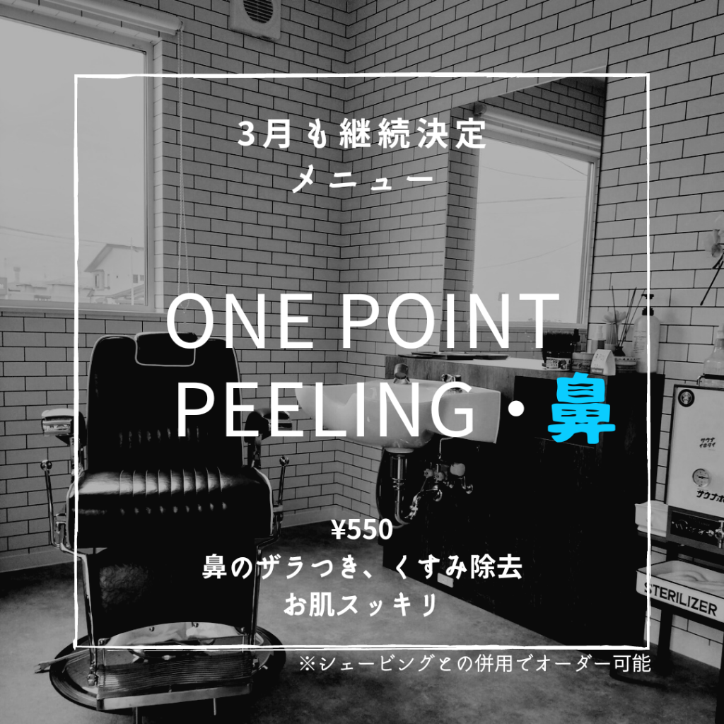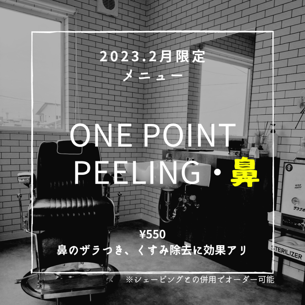 2023年3月は、「ワンポイントピーリング・鼻」を2月から継続してシェービング時のメンズグルーミングオプションメニューとして提供しております。